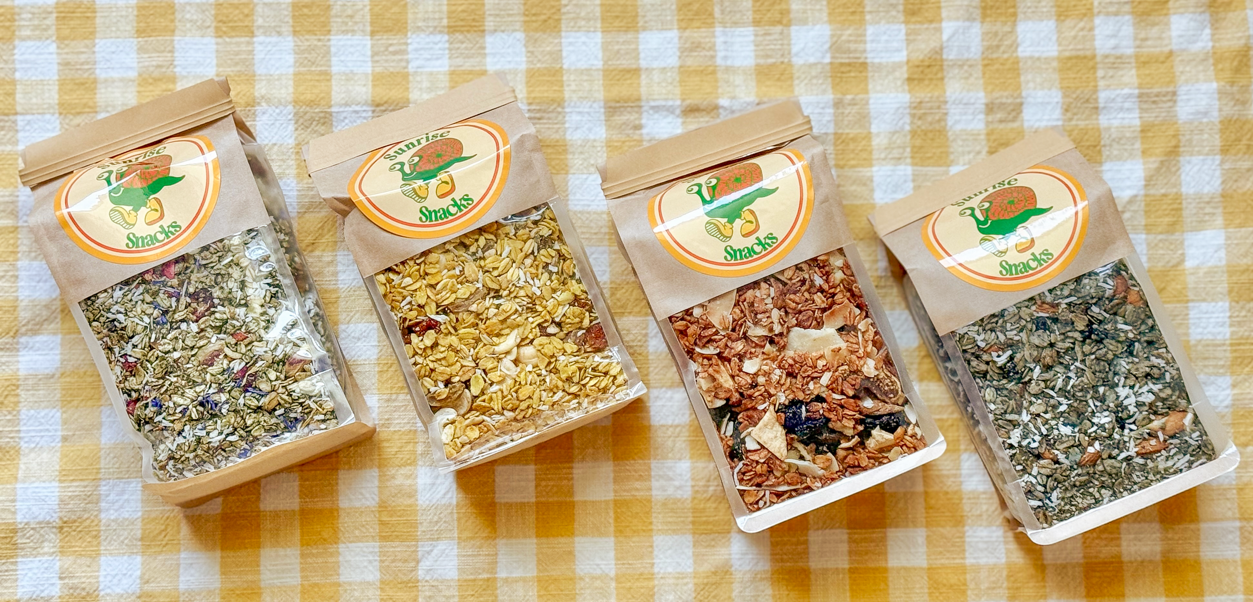 Sunrise Snacks is our line of nutrient-dense, wellness-based snacks. We can be found at your neighborhood farmers market, endurance sports events, and outdoor sports festivals.